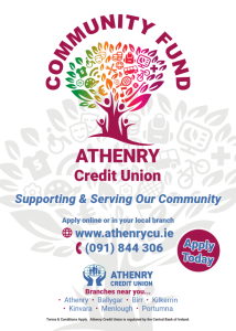 Terms and conditions apply. Max application €10K per applicant. For any queries, contact Athenry Credit Union on 091 844 306