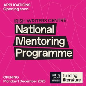 A minimum of 35 mentoring relationships are on offer every year as part of the Irish Writers Centre National Mentoring Programme. Applications for next year’s programme will open via Submittable on 1 December 2025. See below for full details and how to apply.