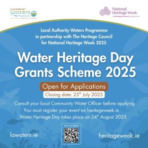 A total of €30,000 is available through the scheme. Water Heritage Day takes place on Sunday August 24th as part of Heritage Week and in partnership with The Heritage Council.
