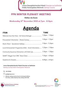 The Galway County Public Participation Network (PPN) are hosting their plenary / gathering on Wednesday 12th November 2025 at 7pm online.